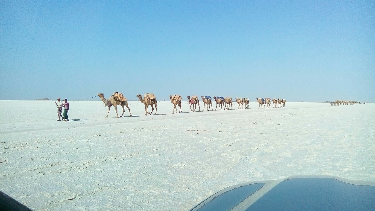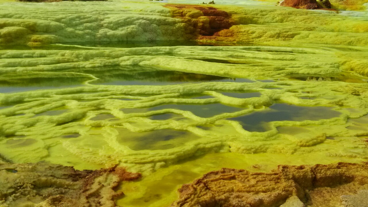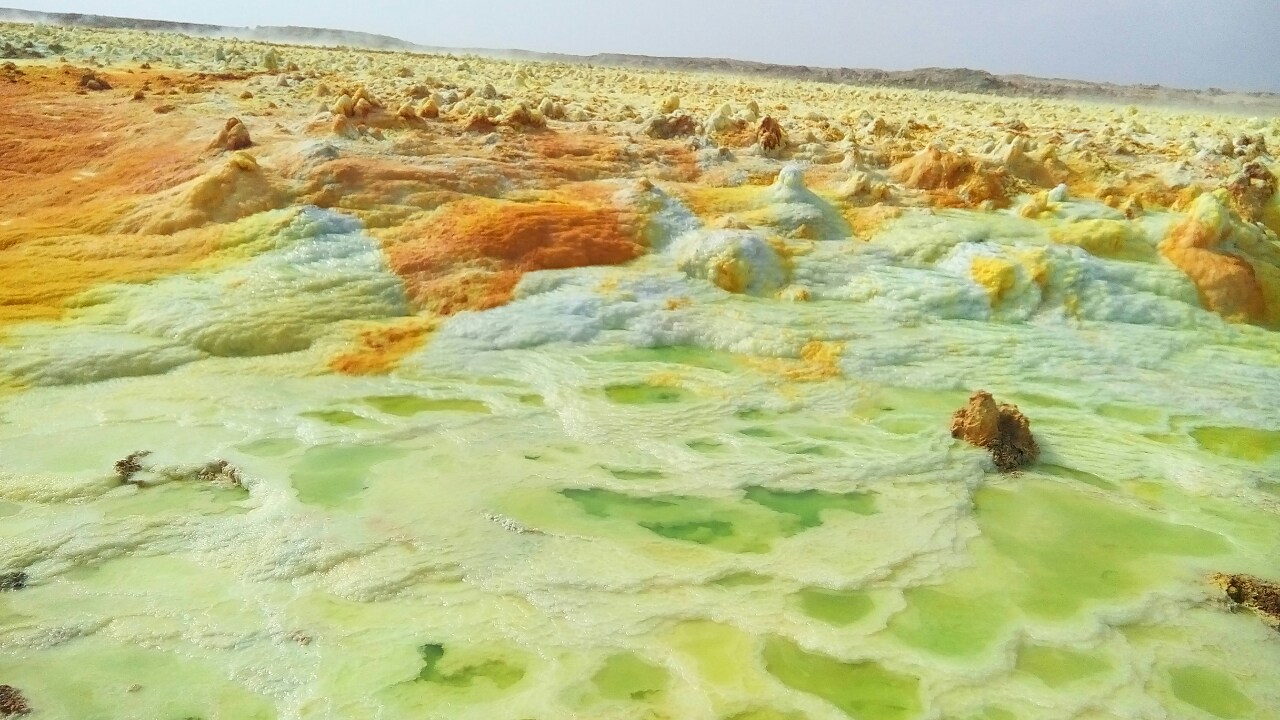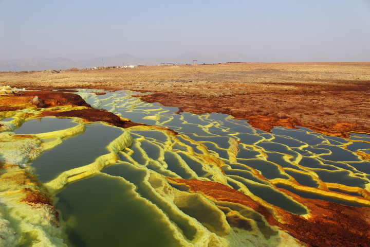 <em>The Danakil Desert is located between the Ethiopian plateau and the Red Sea. The salt plain near Dallol is the lowest part at 116 metres below sea level. In prehistoric times, the territory was in the form of a gulf. According to geologists, this is a sea bed that emerged for a brief moment in the history of the planet; the Afar depression will in fact form a future ocean with the Red Sea and the Gulf of Aden.</em>